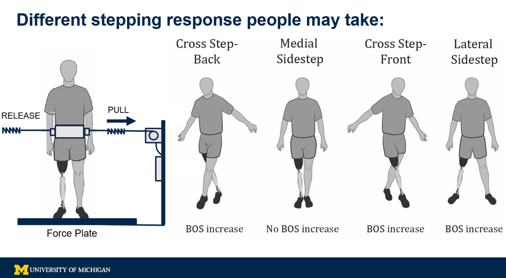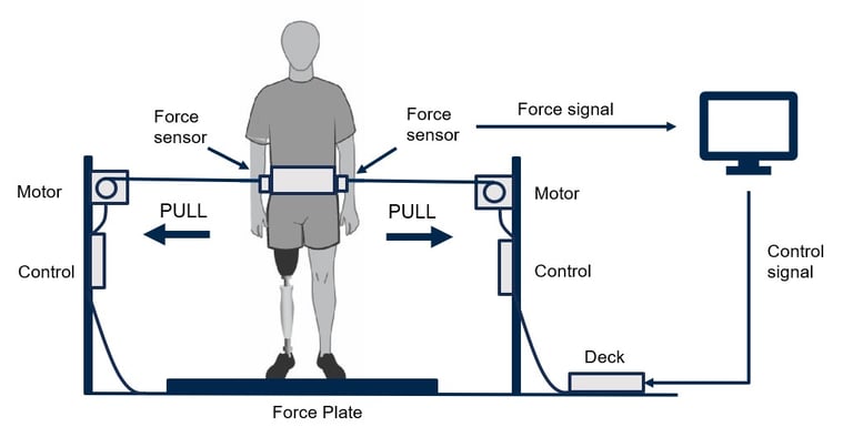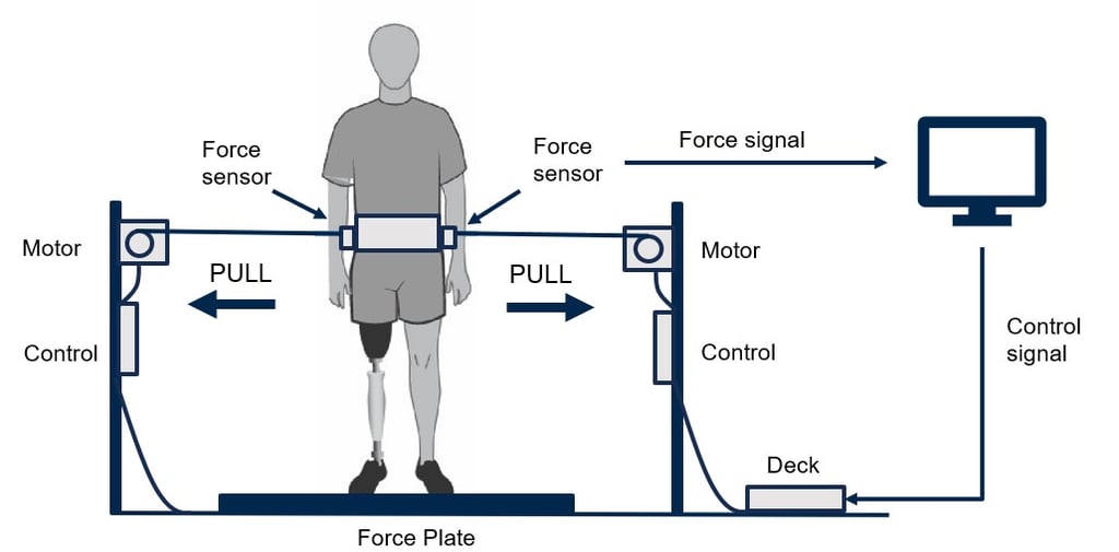 This study addressed the application of accurate and specific forces to induce perturbations on individuals with TFA. Analysis of reactive stepping data explores the influence of socket trim line height on hip muscle function. This system supports future studies exploring the effects of perturbations on different planes and terrains, aiming to reduce falls and enhance the quality of life for people with TFA.