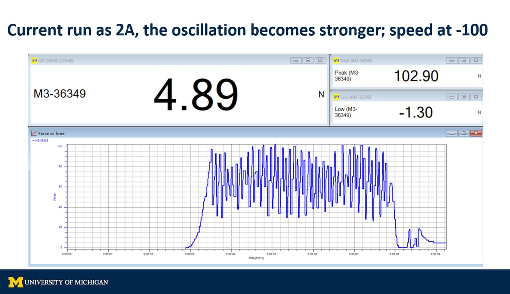 In this case, I figured out that using the motor we have recently to initiate a stable perturbation force in a more extended period is impossible. I need to search for a more reliable motor and control system. I am still working on that.