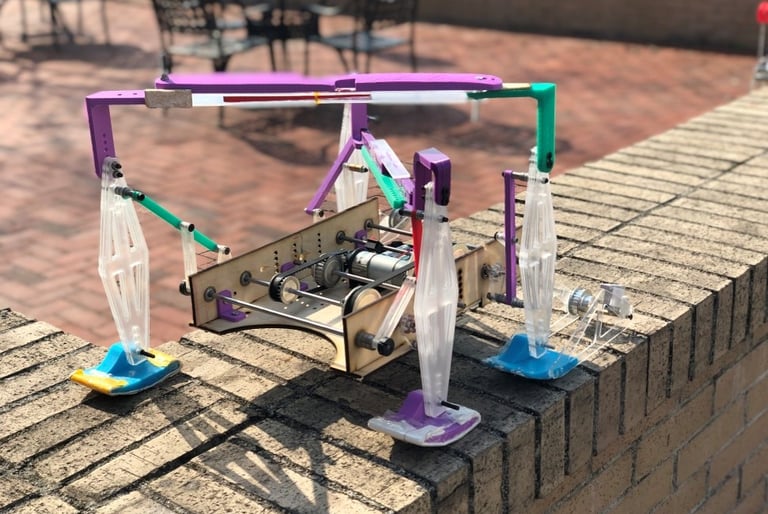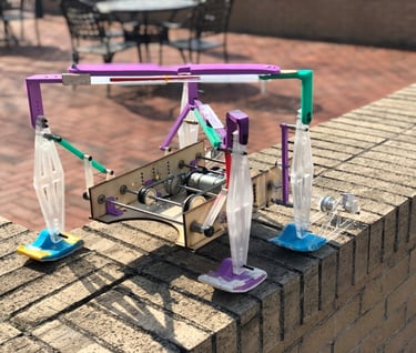 Ordinarily, a vehicle is propelled by four individual motors, with each motor responsible for controlling a distinct leg or wheel. However, in this instance, we have innovatively reengineered the system to operate using a single motor. This remarkable achievement is made possible through the implementation of a meticulously crafted 4-bar linkage structure. This project is an integral part of the ME370 course team effort.