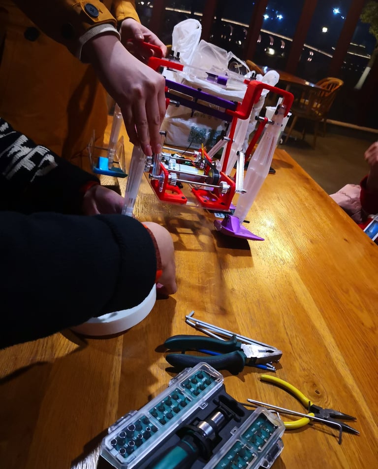 In moments like these, I took deep breaths and carried on. I also witnessed another group patiently waiting for their parts overnight, only to experience a sudden power outage at 7 a.m. The lights dimmed for just half a minute, but when the power returned, the 3D printer went wrong, printing on the wrong axis. All the parts were ruined and rendered useless.